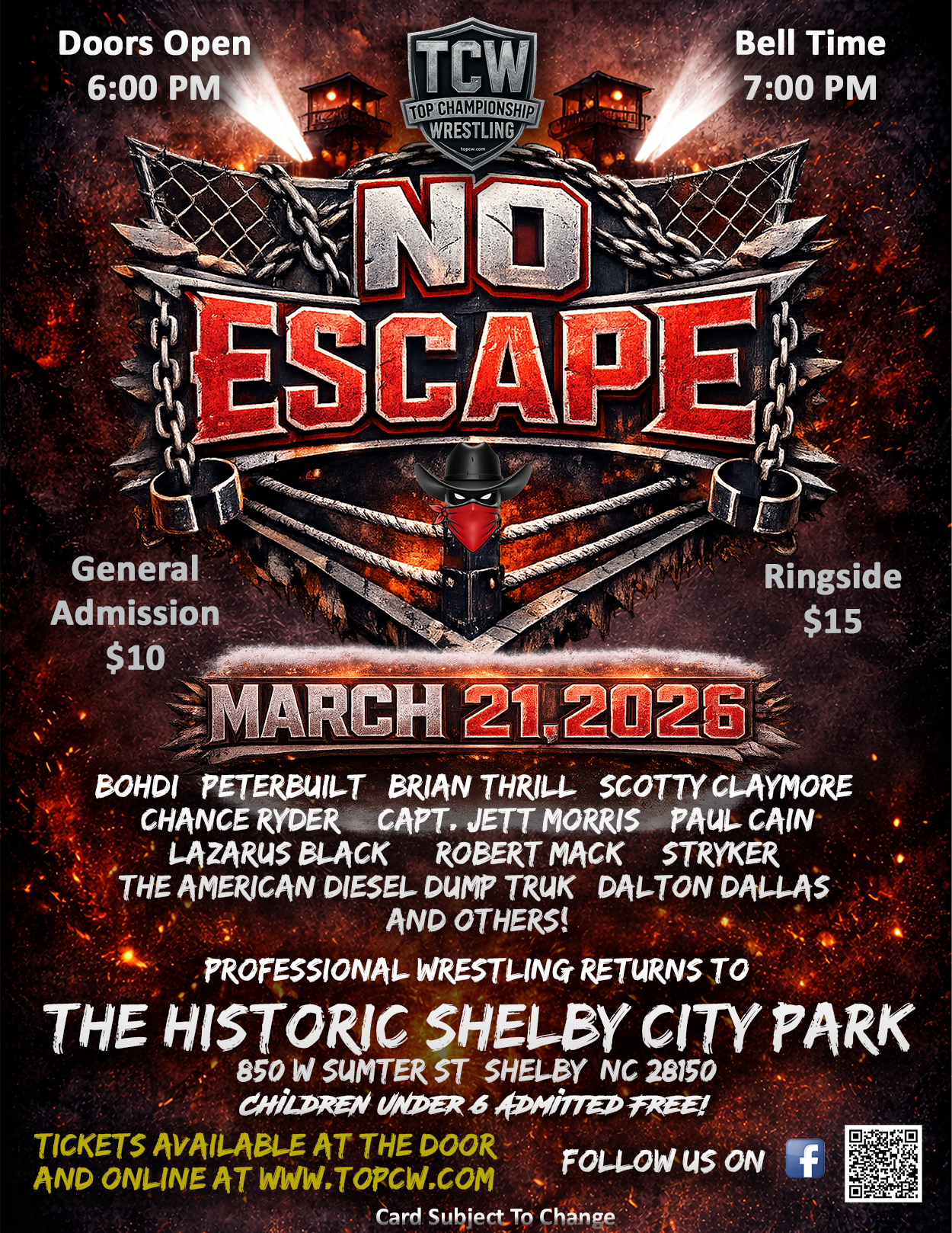 Be A Part Of The Fastest Growing Promotion In The Area And Gain Access To The Fan Base!Visit The Sponsors Page For More Information!